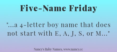 Nancy's Baby Names on Twitter: "Ready for Five-Name Friday? Today we need an uncommon 4-letter boy name... https://t.co/wy1nj6fjr4… "